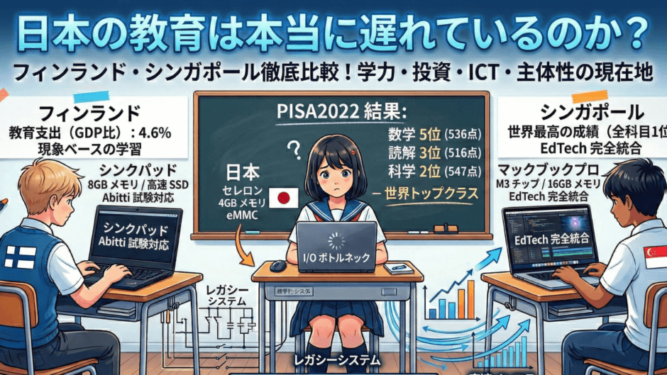 【2026年最新データ】日本の教育は本当に遅れている?フィンランド・シンガポール比較とGIGAスクール「低スペック端末」の罠