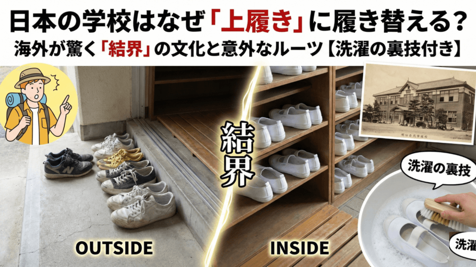 日本独自の学校文化である「上履き」について、その起源から現代の是非まで徹底的に解説します。