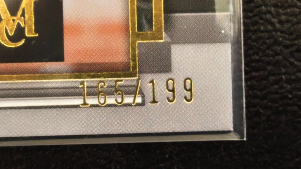価値のあるカードには「シリアルナンバー(例:17/50)」が刻印されており、世の中に何枚あるかが明確です。 TCGでは高レアリティカードの総発行枚数が不明なことが多いですが、スポーツカードの高額盤は「世界に何枚あるか」が管理されています。