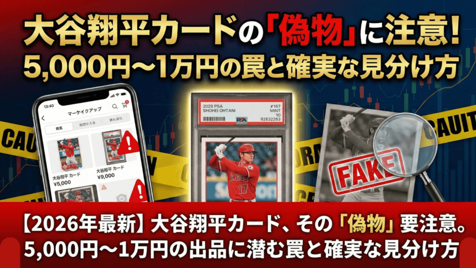 大谷翔平選手の活躍により、トレカ市場が沸騰しています。しかし、その裏で「巧妙な偽物」や「価値のない非公式カード」がメルカリやヤフオクなどのフリマサイトに出回っています。