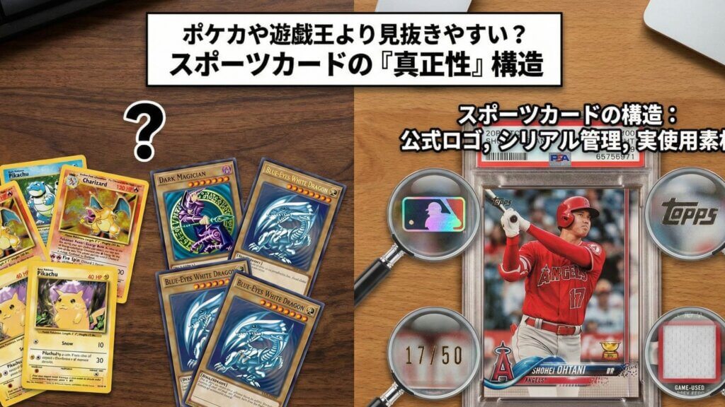 実はスポーツカードは、ポケモンカードなどのTCGに比べて、真贋(本物か偽物か)の判別がしやすい構造になっています。その理由は3つあります。